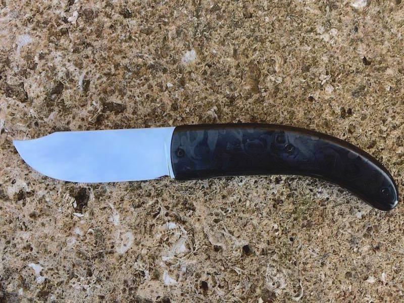Curnicciolu lame inox 1.4528 platine titane ta6v plaquettes resine carbone longueur ouvert 195 mm fermé 110 mm, lame 85 mm